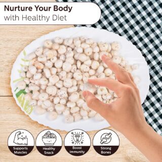 Description:- LOOJI Premium Quality Makhana 200g is a healthy, crunchy snack made from 100% natural and organic fox nuts. Lightly roasted for freshness, it’s rich in protein, calcium, and fiber. Ideal for guilt-free snacking, weight management, or festive recipes, offering premium taste and export-quality standards with every bite.